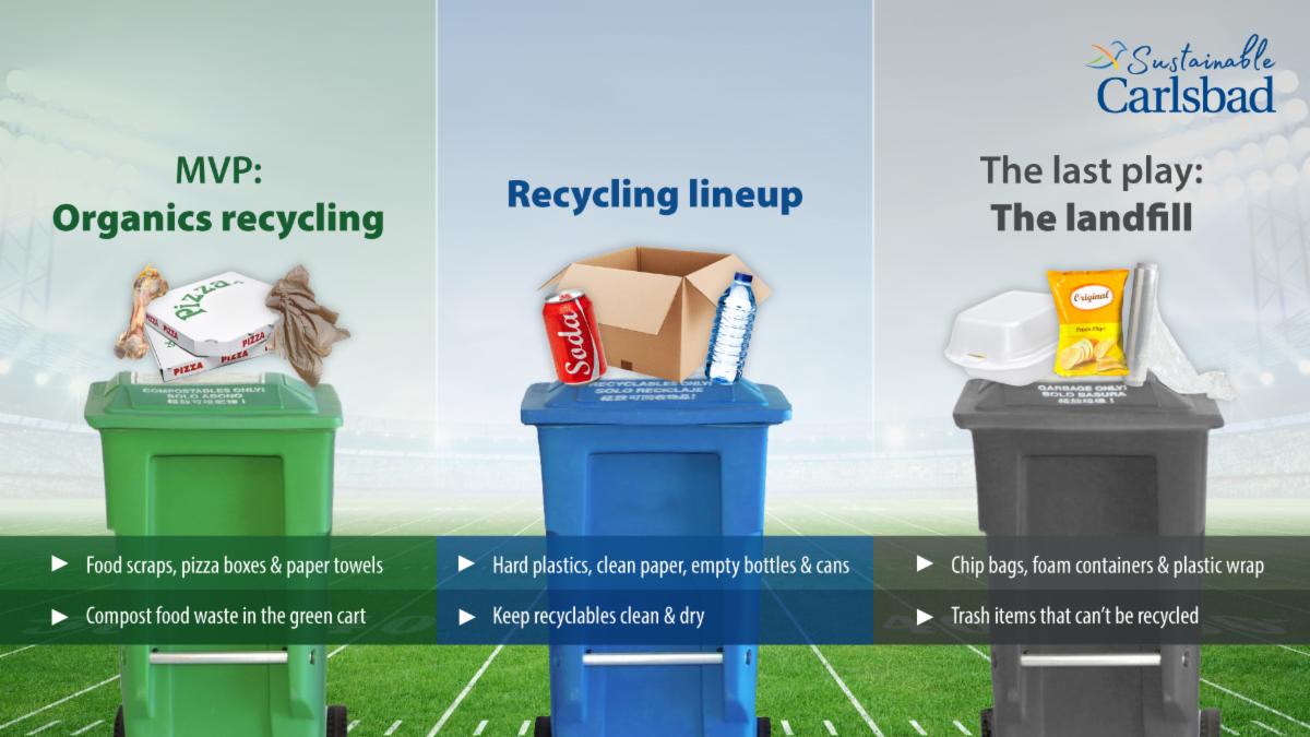 This Sunday is the Super Bowl, and for many households that means snacks, drinks and gathering around the TV. It can also mean a lot of waste. With a few simple choices, you can keep game-day trash to a minimum and make sure everything ends up in the right cart.