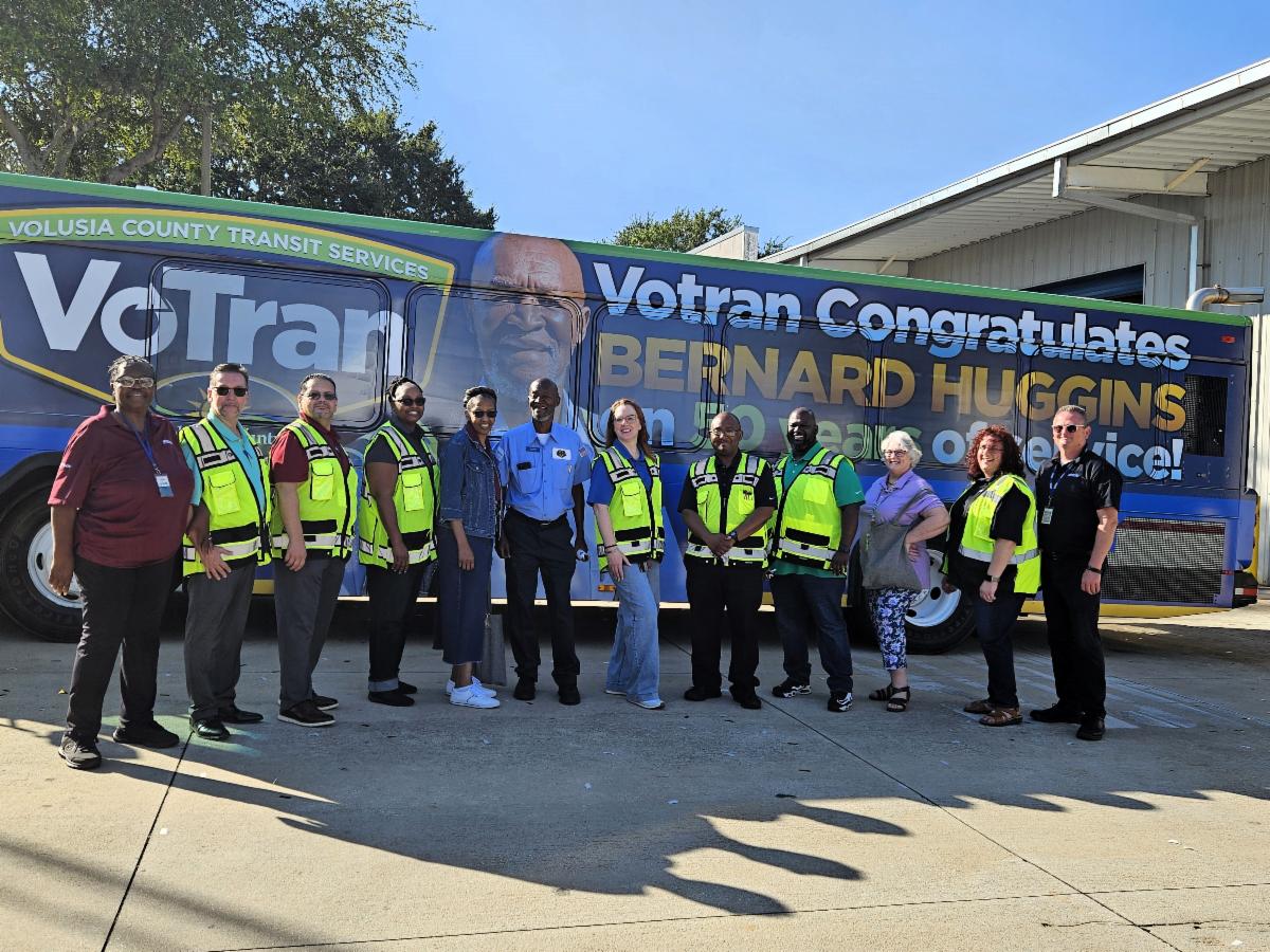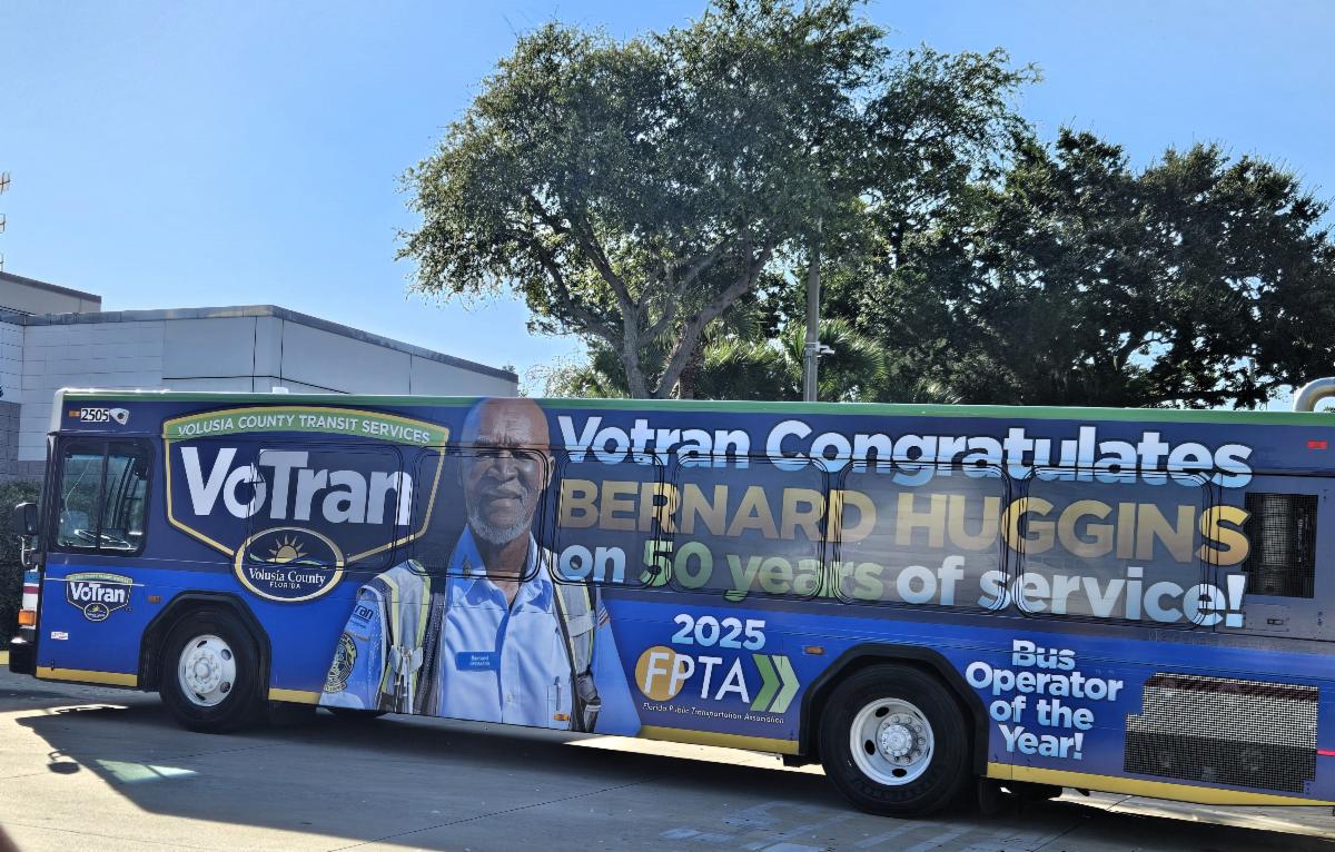 On Friday, September 19, 2025, VoTran celebrated its 50th year of service! A special celebration was held at their office in South Daytona. A highlight of the celebration was honoring Mr. Bernard Huggins, a dedicated bus operator who has been driving riders since the beginning. Mr. Hugginsârecently recognized as Bus Operator of the Year by the Florida Public Transit Association (FPTA)âis now on VoTranâs newest bus wrap, alongside the updated VoTran logo.