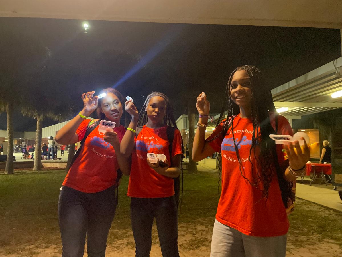 | | Above: Campbell Middle School students showing off their reflective safety vests and bicycle lights. | |