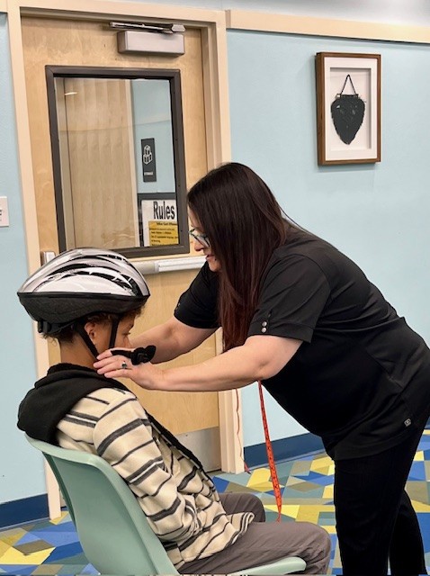 Above: Pamela Blankenship, TPO Community Outreach Coordinator, fitting a helmet for a teen as part of TeenTober™.