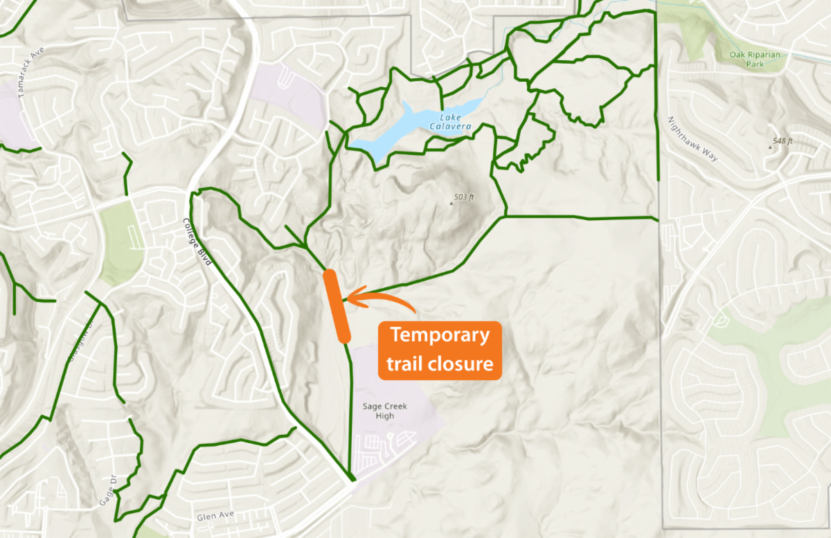 A portion of the Sage Creek/Solar Walk Trail will close beginning Friday, Feb. 13, while staff adjust water levels at Lake Calavera ahead of forecasted rain next week.