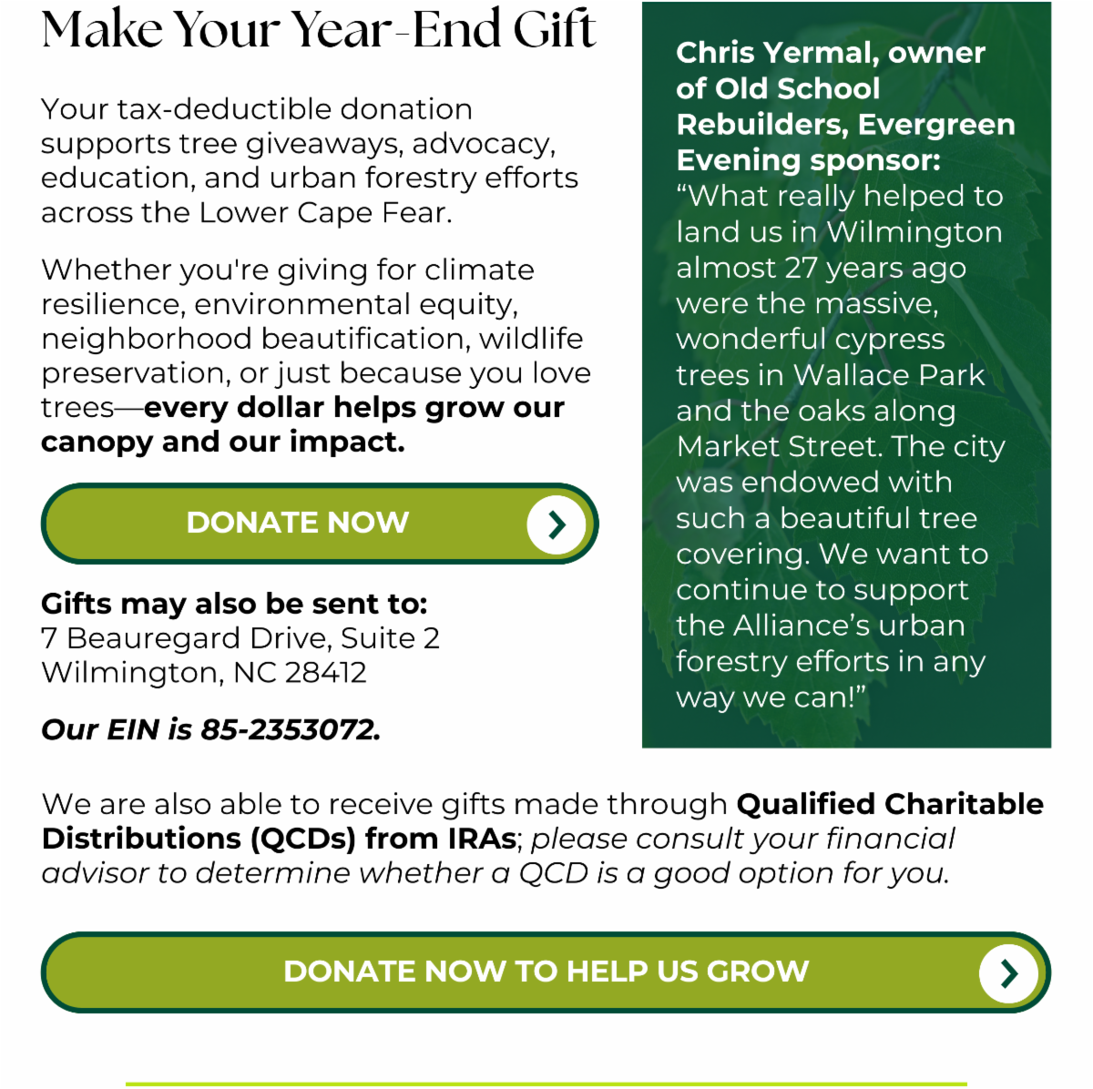 Alliance for Cape Fear Trees | 7 Beauregard Drive Suite 2 | Wilmington, NC 28412 US