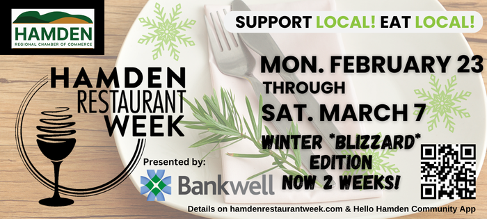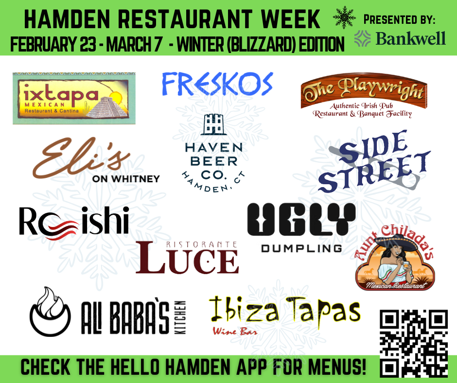 Due to the historic blizzard last week, Hamden Restaurant Week is continuing this week— giving everyone extra opportunities to get out and support our amazing local restaurants. All the details will be available at hamdenrestaurantweek.com and don't forget to download the Hello Hamden App!