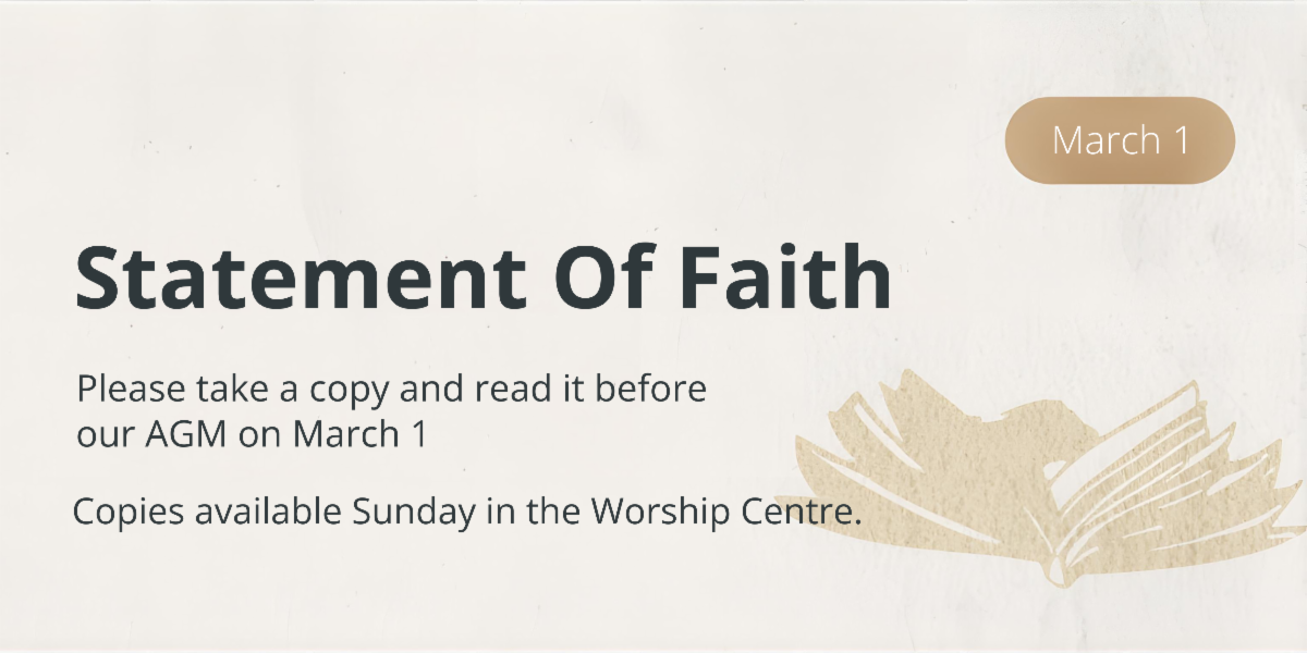 Our hope is simple: that our church family will read it ahead of time, and that we’ll be able to adopt it at the AGM. This is meant to be a unifying document that will serve as both an evangelistic and a membership tool, giving us clear, shared language for what we believe the Bible teaches about God, Salvation, the Church, and the Christian life. If you have a question or concern after reading it, please reach out to Pastor Andrew or Jeff Scobie, Judy Corbett or George Meisner before the AGM so it can be addressed in advance, with clarity and care.