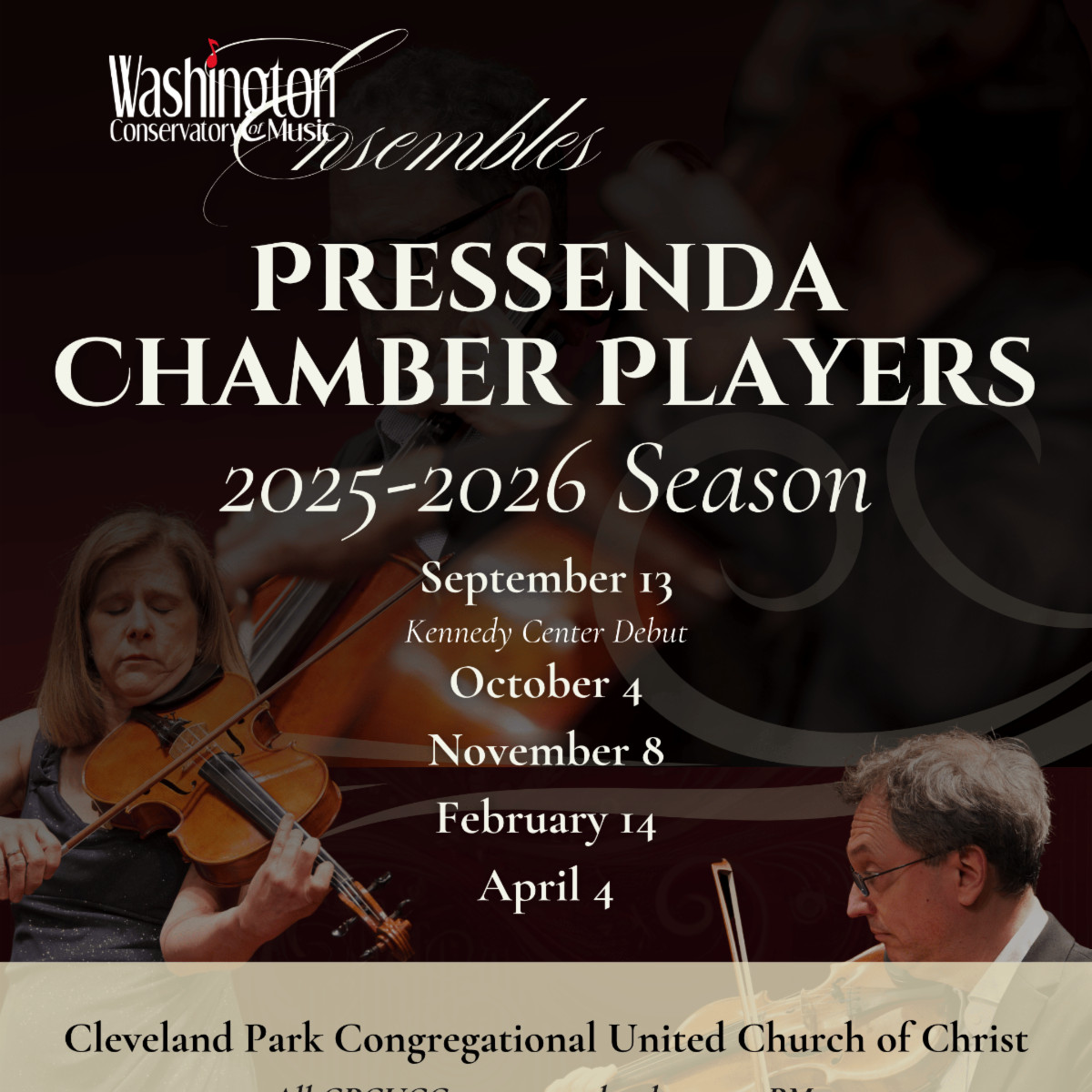 Spend your Valentine's Day afternoon enjoying beautiful chamber music! Washington Conservatory of Music (WCM) presents a concert with the acclaimed Pressenda Chamber Players, performing masterworks by beloved classical composers.