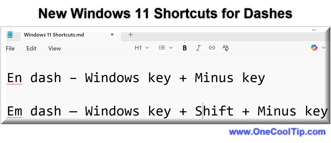 Here's a Cool Tip: Use the New Windows 11 Keyboard Shortcuts for En and Em Dashes.
