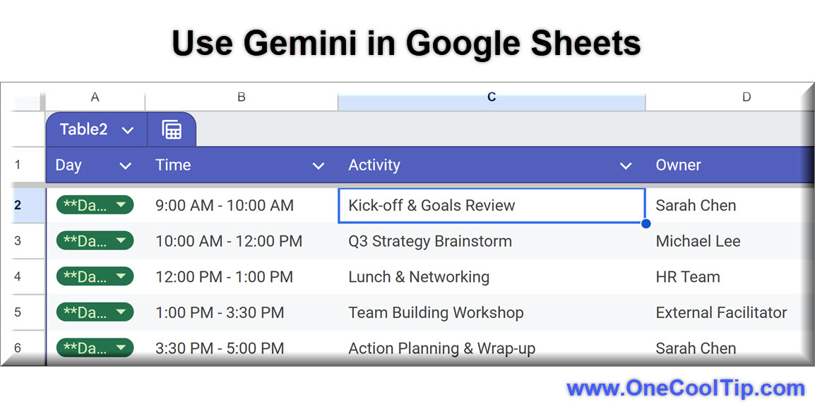 Here's a Cool Tip: Use Google Gemini in Google Sheets.