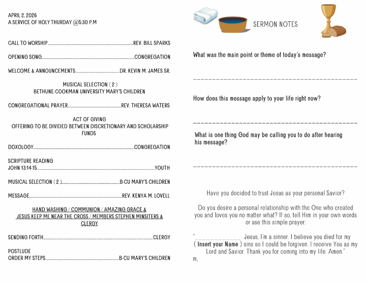 We are honored to welcome Rev. Kenya M. Lovell as our guest speaker, delivering a message based on John 13:14–15.