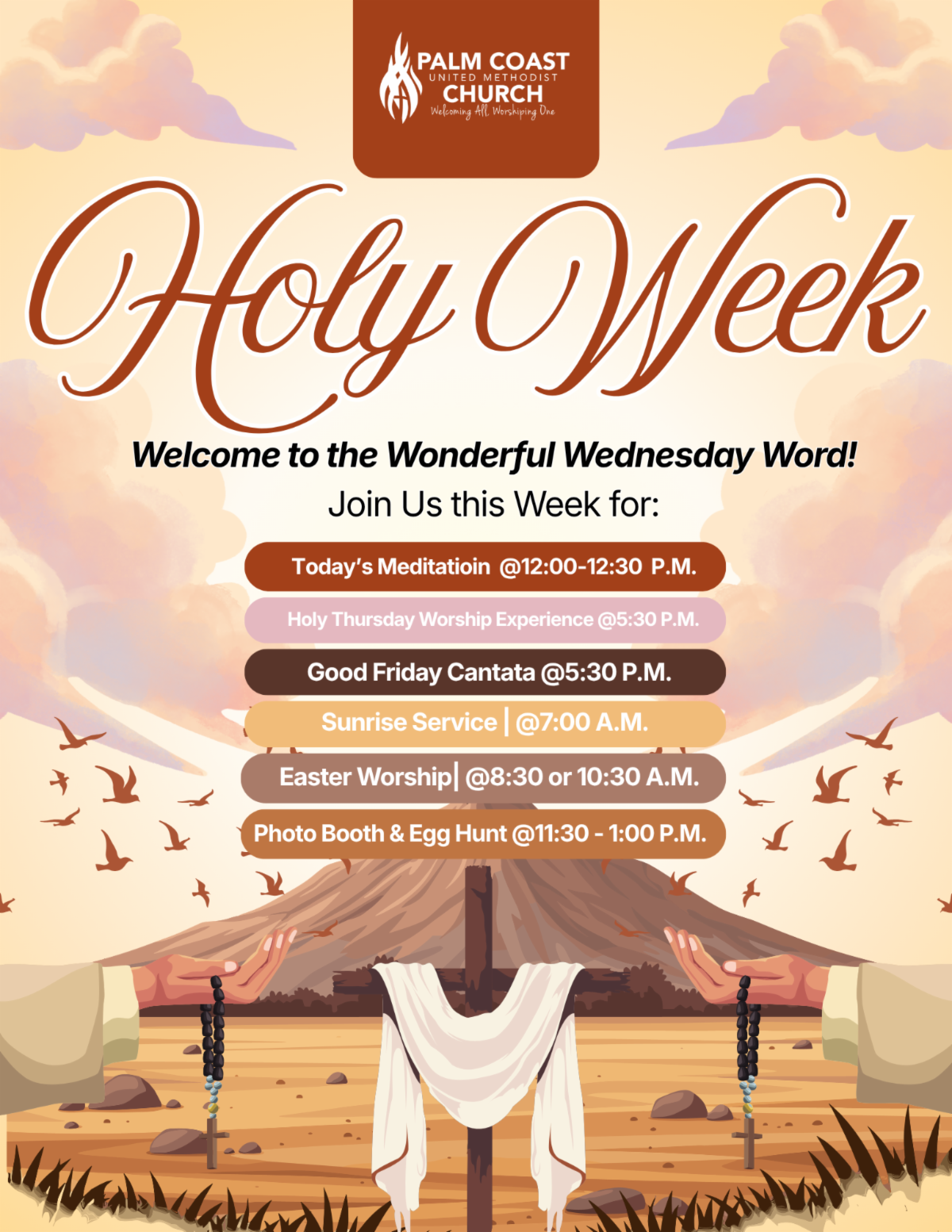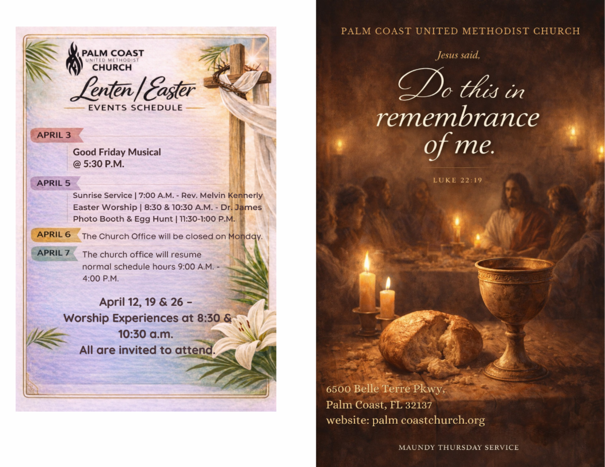 We look forward to worshiping with you at either service—join us for a meaningful time of praise, prayer, and community in person watch LIVE on Facebook, YouTube and our website! Go to www.palmcoastchurch.org and click on the "Watch" button. It's that easy!