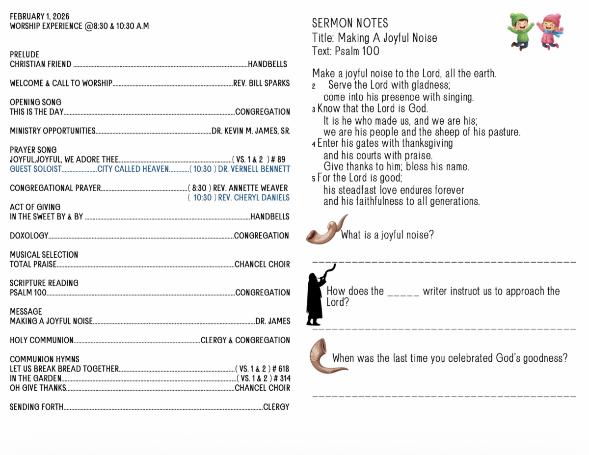 Dr. Pastor Kevin James Sermon is entitled "Making A Joyful Noise" based on Psalm 100.