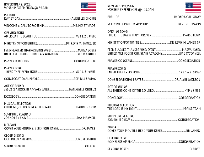 Thanksgiving is on Thursday, Nov. 27, 2025. For the seventeenth year, our church is collaborating with Team Feed Flagler to provide food for needy individuals and families in our community. For this, we need your help. Please consider volunteering in one or more of the following ways: