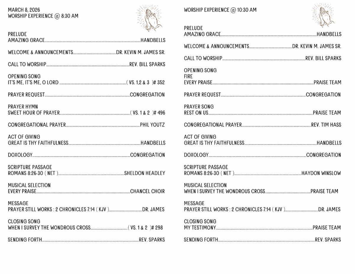 We will continue with TWO WORSHIP SERVICES