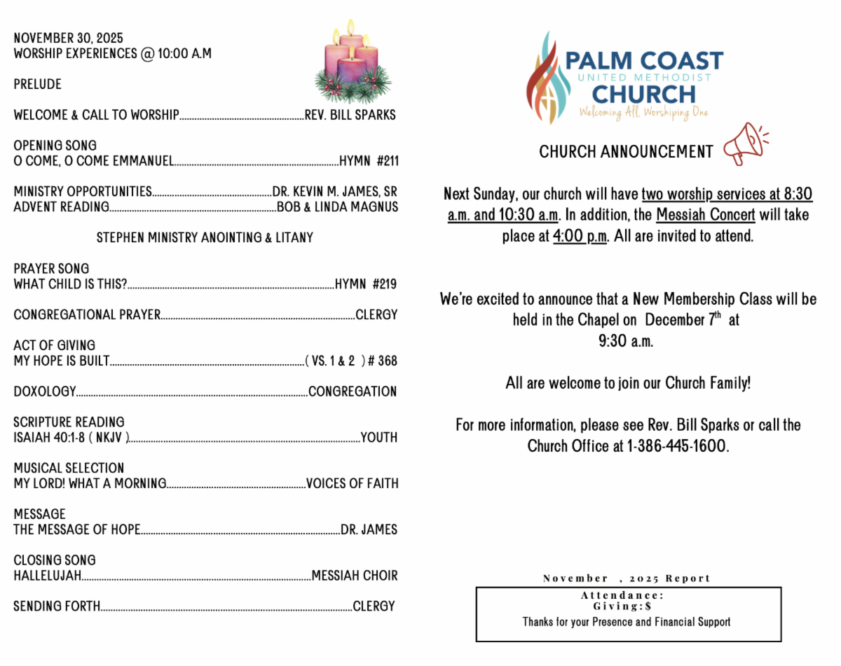 Thanksgiving is on Thursday, Nov. 27, 2025. For the seventeenth year, our church is collaborating with Team Feed Flagler to provide food for needy individuals and families in our community. For this, we need your help. Please consider volunteering in one or more of the following ways: