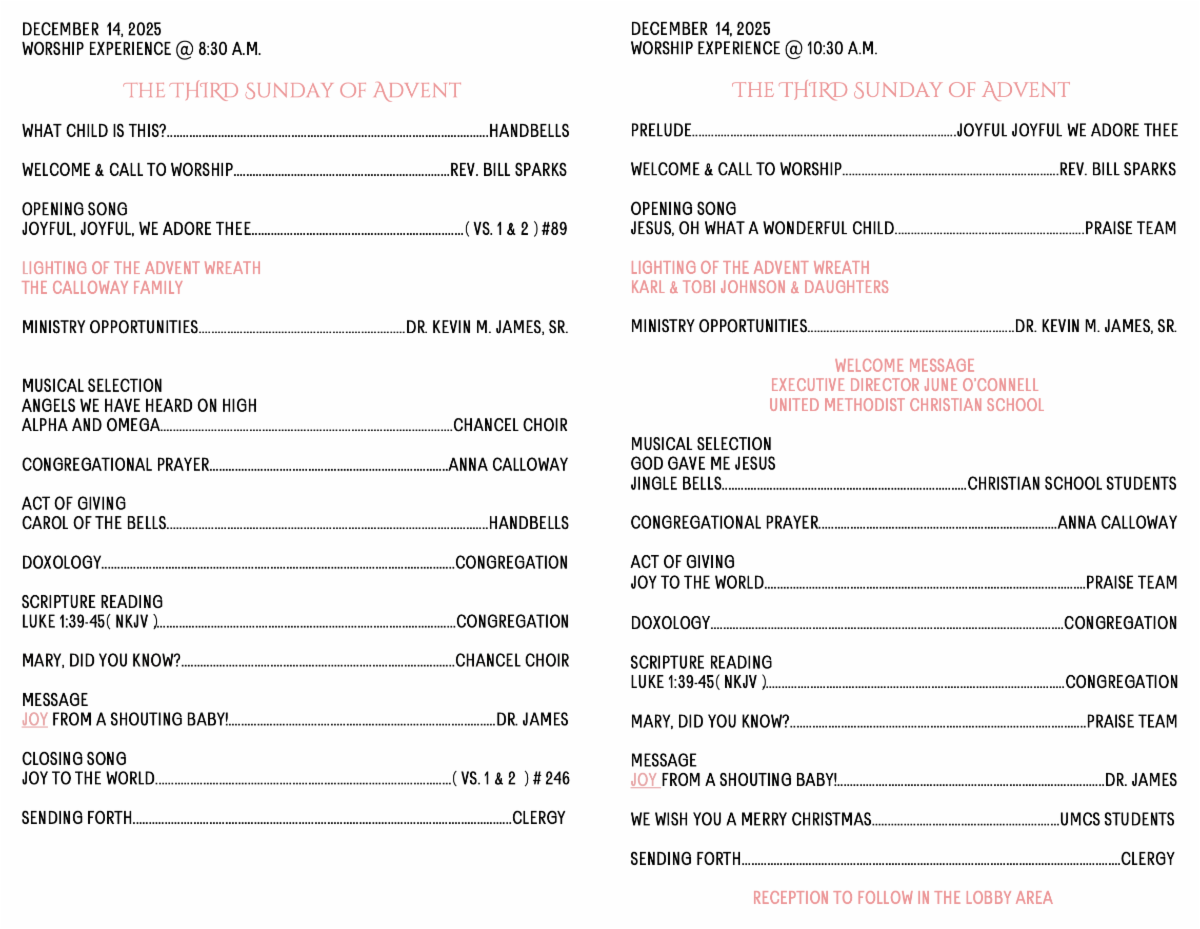 We will continue with TWO WORSHIP SERVICES