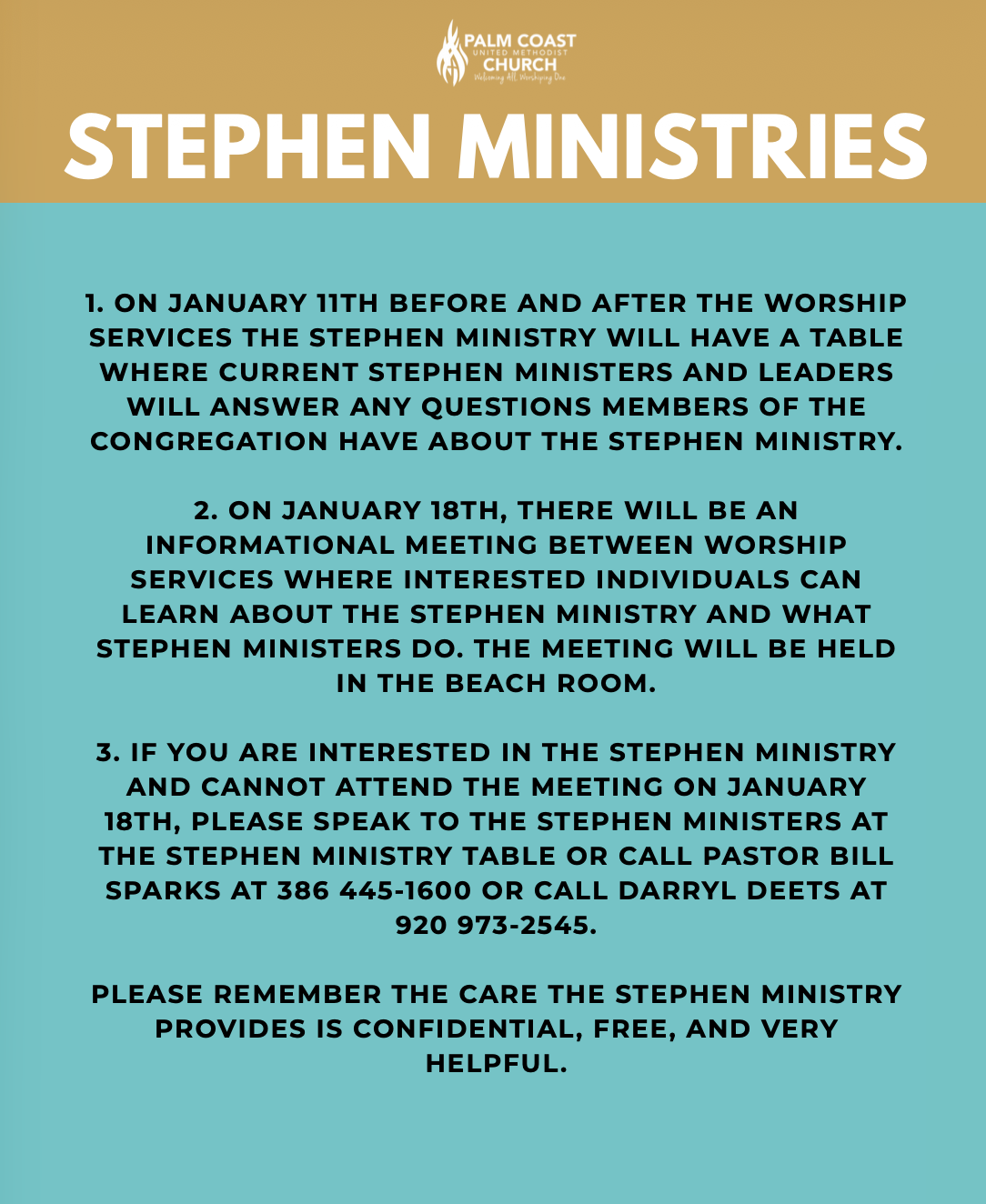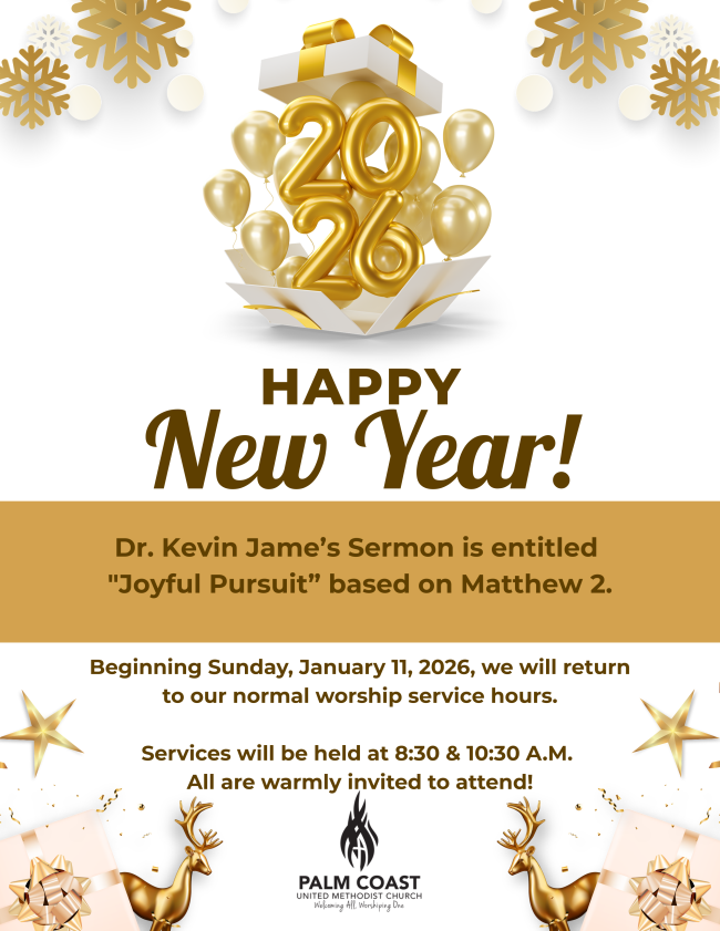 We look forward to worshiping with you at either service—join us for a meaningful time of praise, prayer, and community in person watch LIVE on Facebook, YouTube and our website! Go to www.palmcoastchurch.org and click on the "Watch" button. It's that easy!