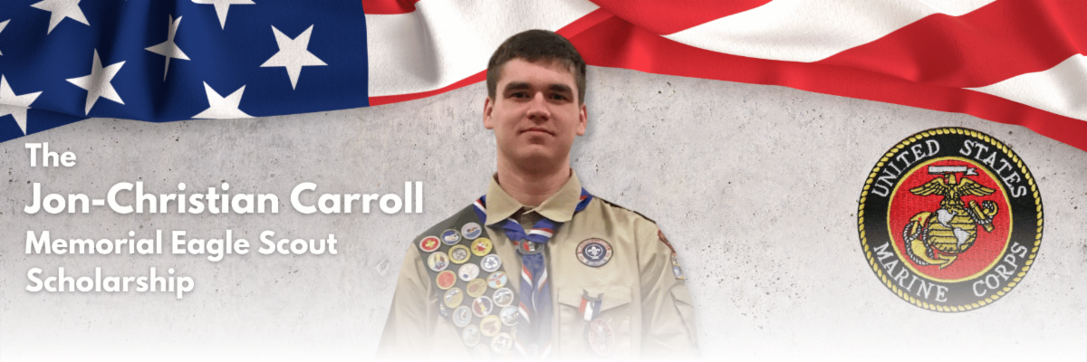 The Jon-Christian Carroll Memorial Eagle Scout Scholarship honors the legacy of Jon-Christian “Jon-Jon” Carroll—an Eagle Scout, U.S. Marine, and beloved son, brother, and friend who passed away in 2020. A proud member of Troop 544, Jon-Jon loved Scouting, the outdoors, and serving others. This scholarship supports Eagle Scouts who exemplify outstanding leadership, community service, and academic excellence.