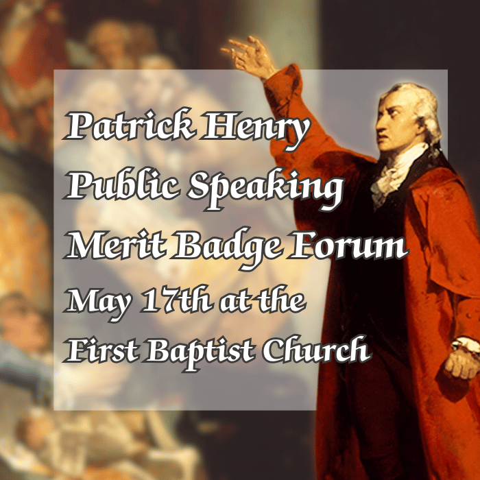 Interested in completing the Public Speaking and Communication merit badges? Due to limited availability in the Communication merit badge classes, Scouts are asked to complete the Public Speaking merit badge before registering for Communication. While not a formal requirement, taking Public Speaking first will help Scouts build strong foundational skills and get more out of the Communication badge experience. And yes—Patrick Henry will be making a return appearance this year!