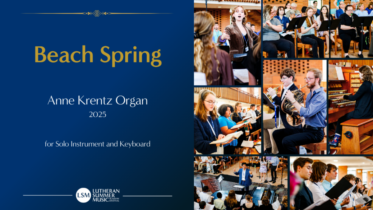 Download a new free arrangement from Lutheran Summer Music 2025 by Anne Krentz Organ: Beach Spring for solo instrument with keyboard accompaniment. Based on the well-known shape-note hymn tune, this versatile work is this year’s installment in the LSM Hymn Tune Project and can be performed either in full or as individual movements.