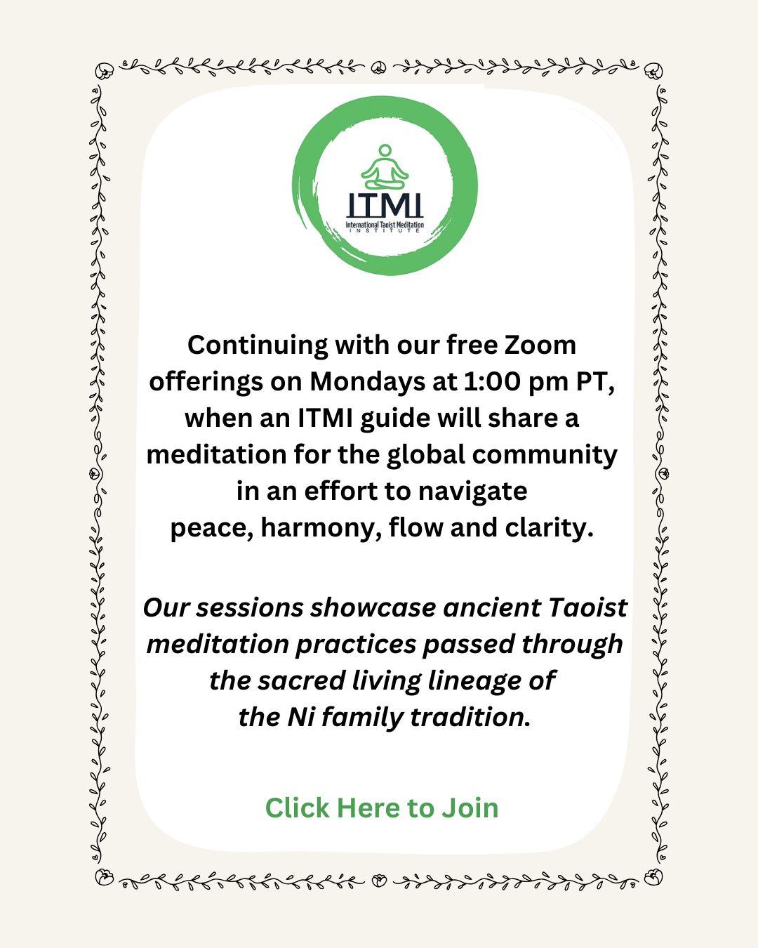 On Sundays at 7:00 am PT, you are invited to join us via Zoom in a Spiritual Renewal Ceremony facilitated by the Ministers of the Integral Way; including James Tuggle, Sue Sullivan and Jono Howard, along with others who guide us in how to apply the wisdom of the Integral Way. This service is free for the College of Tao community, friends and family.