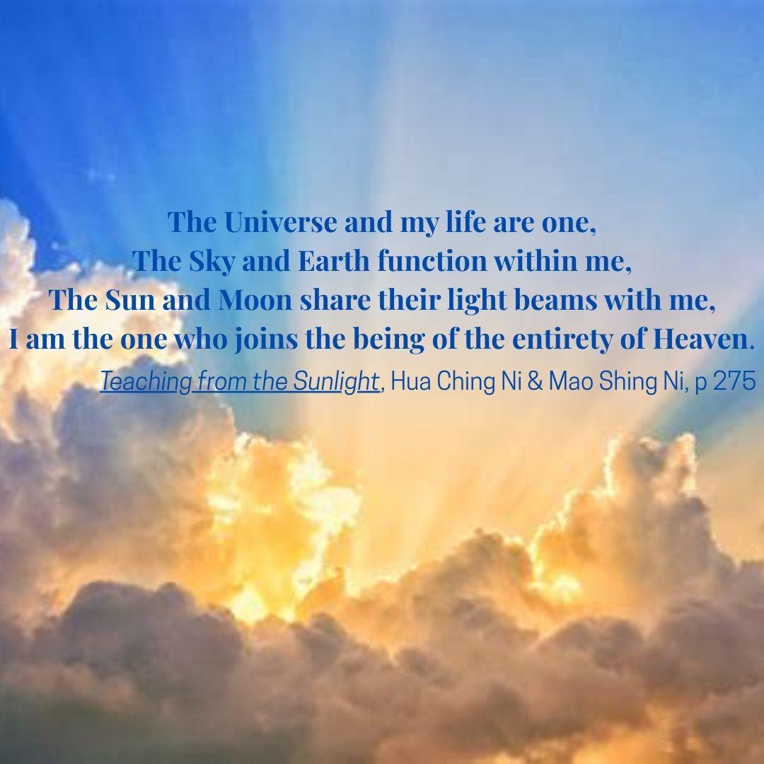 One Spiritual Reality, Chapter 30 p.192-201: “The Great Practice…For Enhancing your Spirit and Strengthening your Life”. I feel in this short chapter OmNi summarizes so many aspects of spiritual cultivation in the form of aphorisms which are fascinating and easy to read. However, all of them contain deep essence and are based on profound knowledge. Our steady practice and diligent study may help us to understand the wisdom of these verses and make them useful in our life. Subtitles such as: “Practices to Achieve Perfect Union with Heaven” or “The Interaction of Heaven and Earth” describe the content of this chapter.