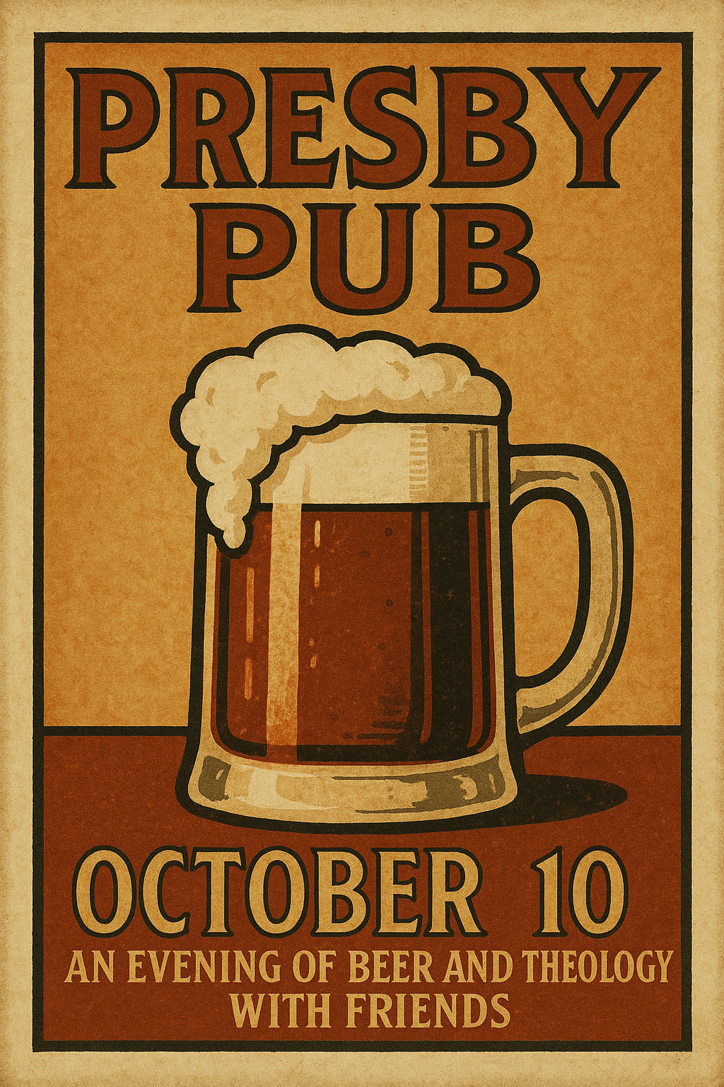 Kick off the Presbytery weekend with laughter, local brews, and great conversation! Join us Friday, October 10th from 6:00–8:00 PM at a Little Rock location to be announced for an evening that’s equal parts fun and thought-provoking.