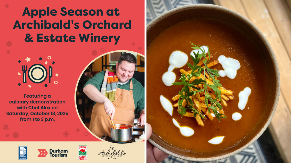 Home to the Apple Capital of Canada, Durham Region is no stranger to all things apple! Especially delicious apple dishes. Using apples from Archibald's Orchard and Estate Winery and other local ingredients, Chef Alex Page has created a delicious soup for you to try at home—the perfect comfort meal as we head into the cooler temperatures and embrace fall.