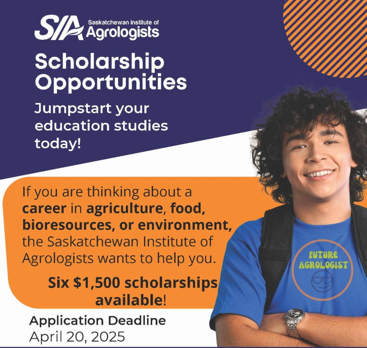 Saskatchewan Grade 12 students have the chance to win a grand-prize scholarship of $6,000 or one of three runner-up scholarships of $3,000, when they submit a three-minute video or 1,000-word essay on the topic of solutions to challenges in agriculture.
