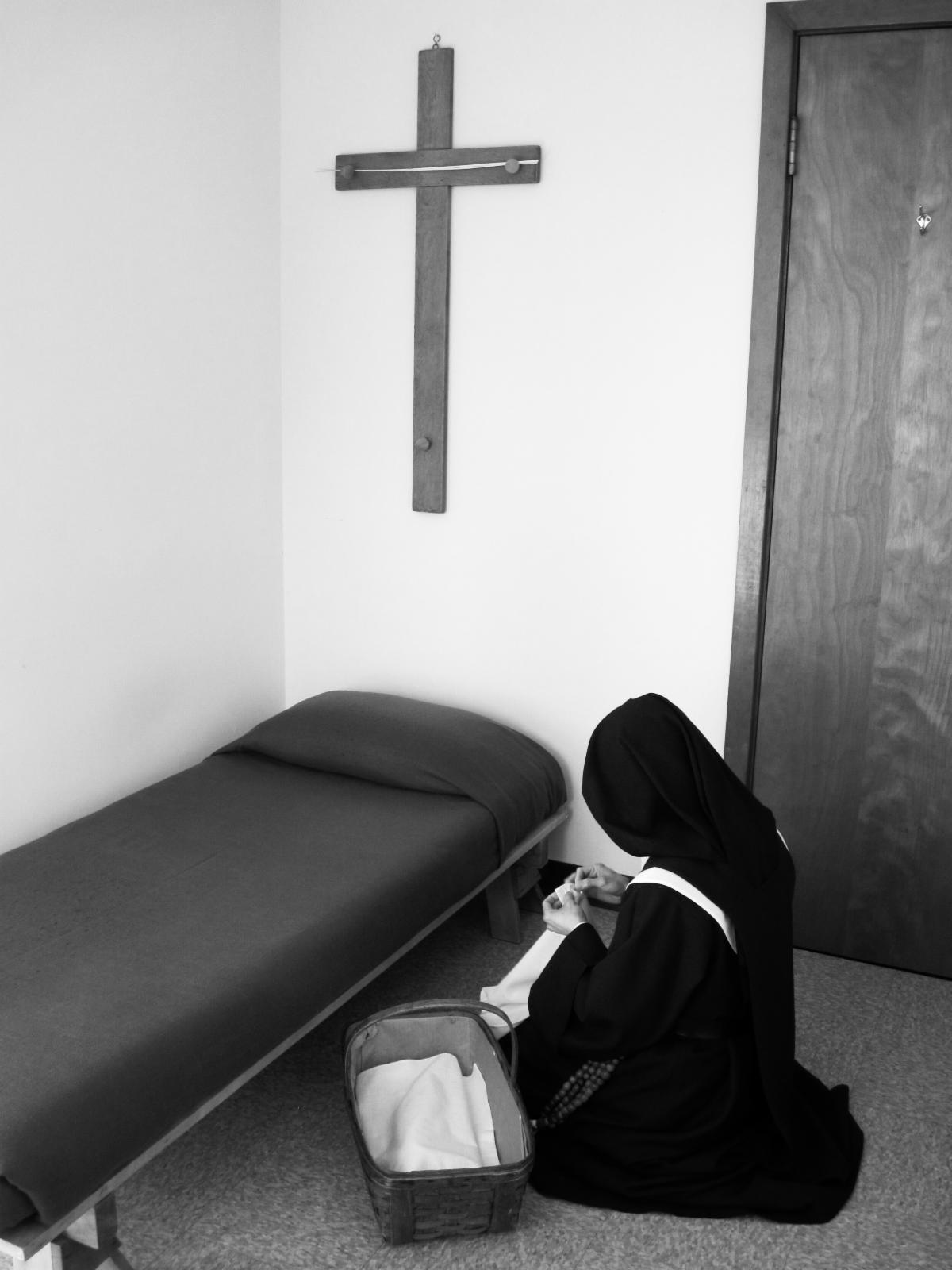 Monastic brothers and sisters have lived this spirituality of the cross for centuries. Many Carmelites and other contemplatives live in simple cells adorned with nothing other than a simple cross. Not a crucifix with the corpus of Christ, but an unadorned cross. The purpose of that is so that as the monk or nun arises from sleep, they embrace the cross as their own each day and literally pick it up to carry it in daily prayer and work to closely imitate the life, suffering, death, AND resurrection of Christ. Their whole lives encompass a life of the cross. My Carmelite friend, Sr. Maureen of Merciful Love, OCD, who just passed away from a brain tumor, had such a cross in her cell at the Shoreline monastery. In keeping with Carmelite tradition, she pinned a scripture verse to the bottom of it, which read: “The mercies of the Lord I will sing forever.” Psalm 89:2. She said her call was to embrace and carry Jesus’ cross in her own life each day and to sing of His mercies to all she met and in all she did! I can attest that she did so until she breathed her last.