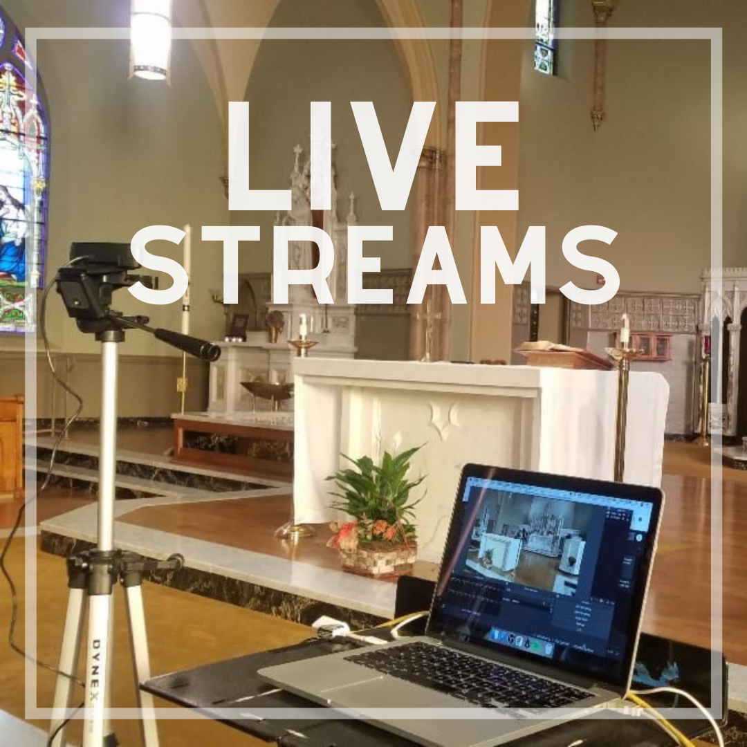 Unless otherwise noted, the Mass is live-streamed from St. Patrick Catholic Church on Sundays at 9 am. Mass is also live-streamed on most Holy Days, funerals, and school Masses.