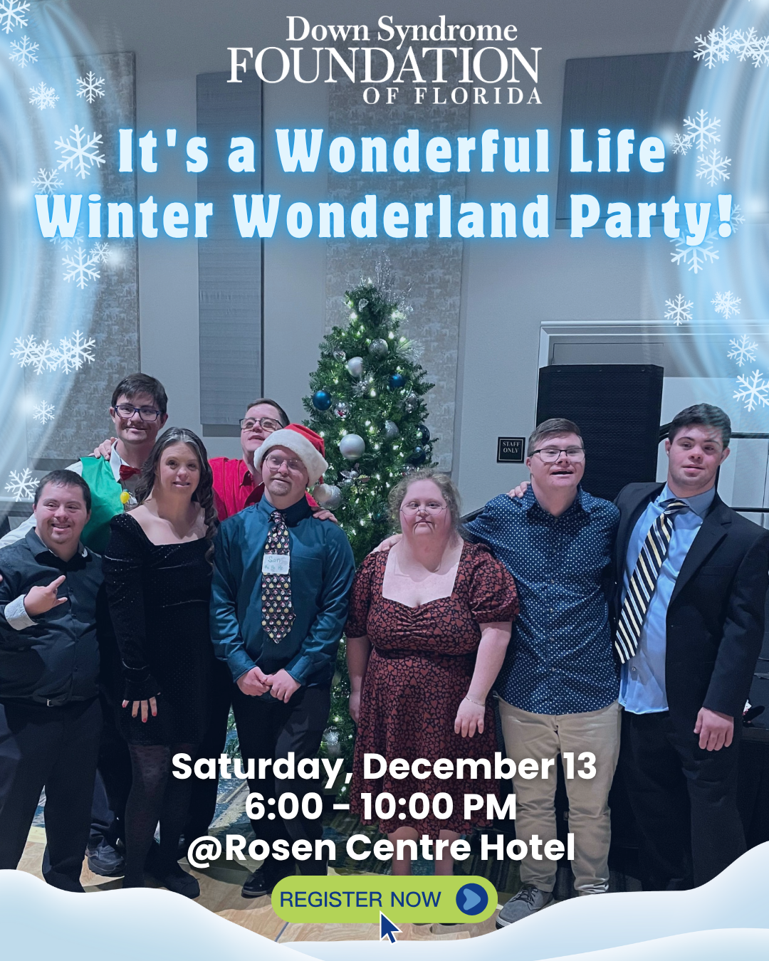 Guests attending the Winter Wonderland Party can secure a special rate of $159 (based on availability) by contacting the hotel’s reservation team at 1-800-204-7234 and mentioning the Down Syndrome Foundation Holiday Party.