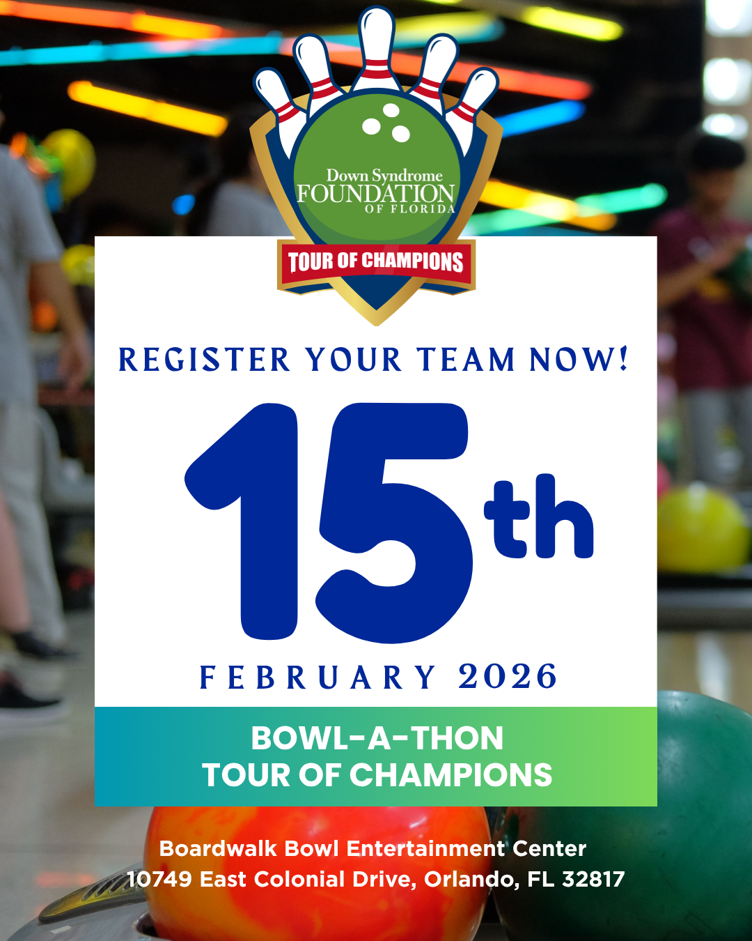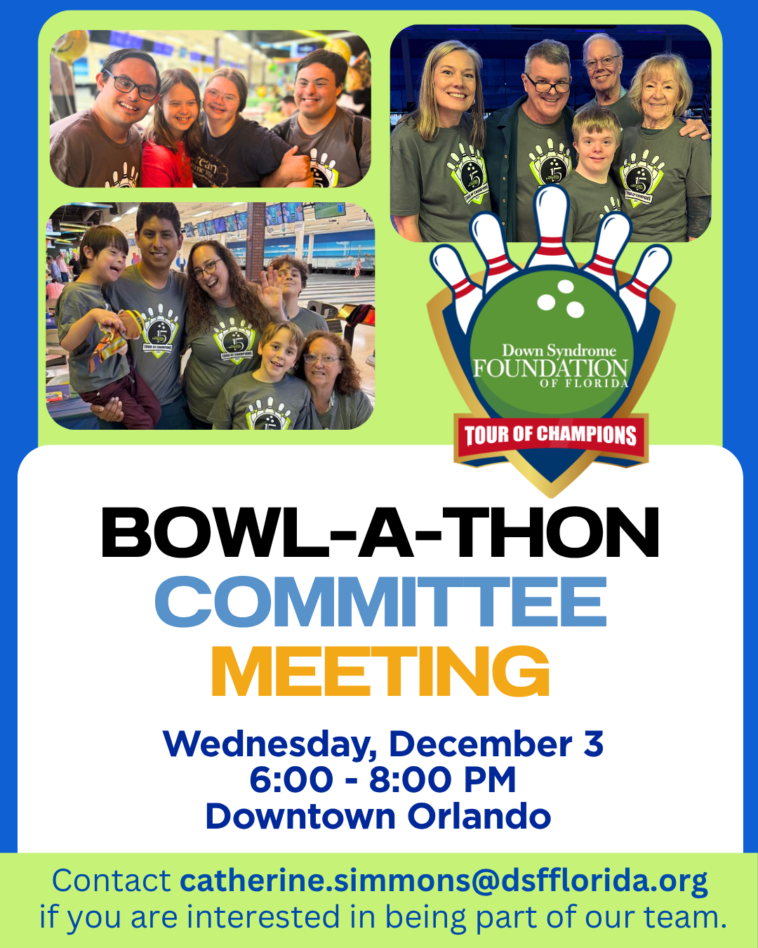 - Have a fundraising team or Corporate Cup team for our annual Tour of Champions Bowl-A-Thon & Silent Auction