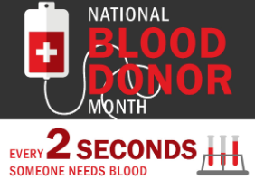 January is National Blood Donor Month! National Blood Donor Month was officially established in 1970 to recognize and honor the millions of Americans who voluntarily donate blood to help save lives.
