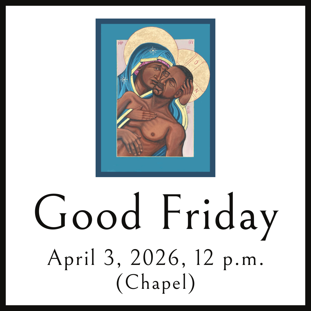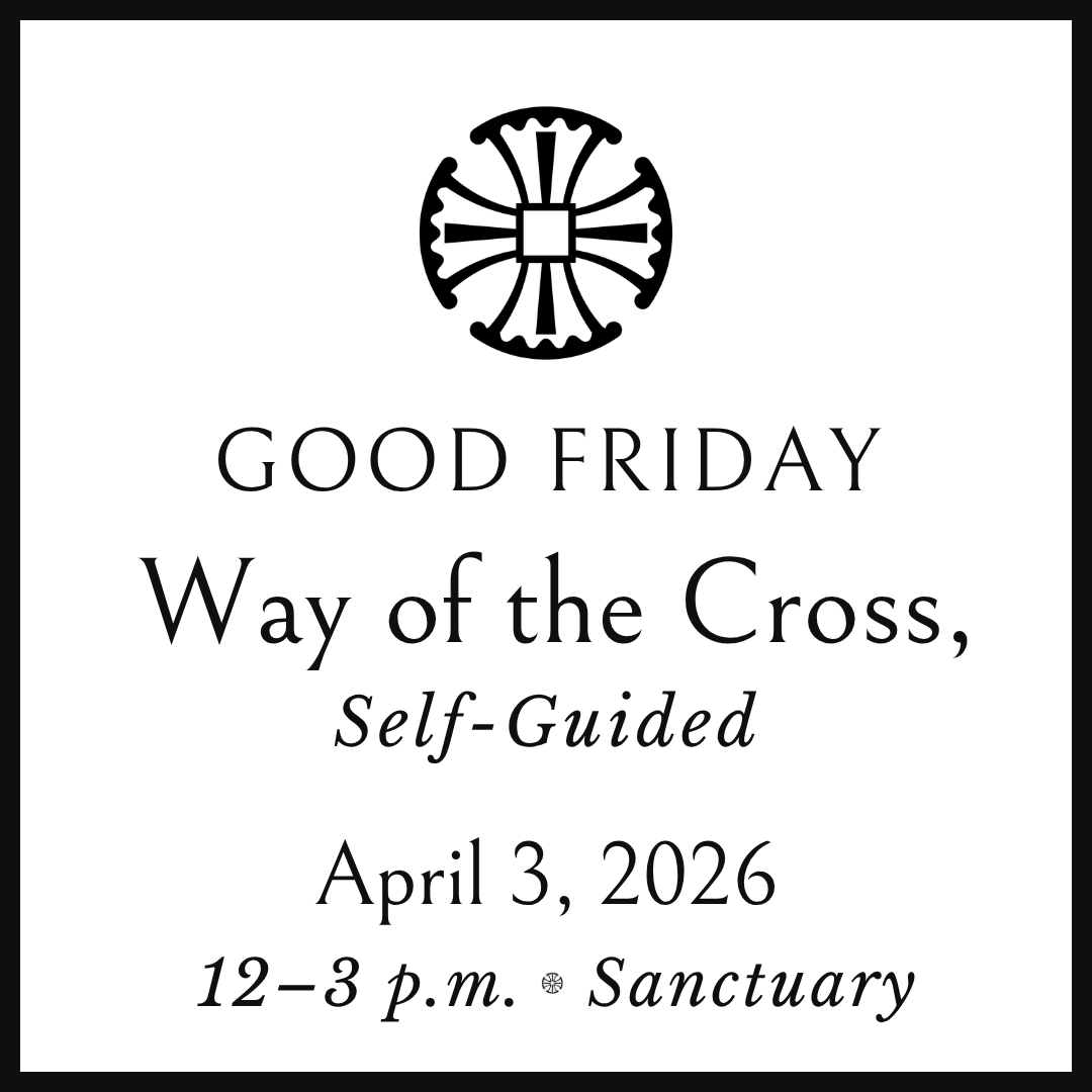 In addition to our service in the Chapel, you are invited to prayer and meditation in our Sanctuary, 12–3 p.m. We hope you will consider walking the Way of the Cross during this time, and booklets to guide you will be provided.