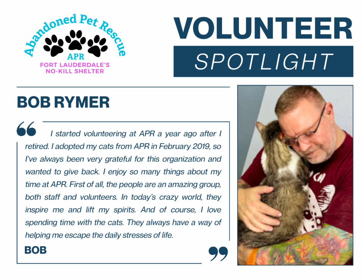 | | | After 2 years and 8 months (985 days) at APR, last month’s 365+ Club featured pet Wonder Woman has officially been adopted! | | | People Who Make It Happen | | Our volunteers are truly the heartbeat of APR. Each month, we shine a light on one incredible person whose kindness, dedication, and time help make everything we do possible. | | |