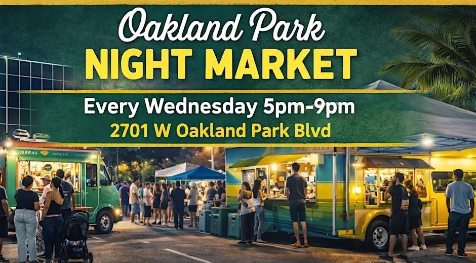 Join APR's adoptable pets at Oakland Park Night Market! Brought to you by Florida Fresh Markets, this exciting new weekly night market in Broward County is your midweek destination for: Delicious bites from top local food trucks, unique finds from artisan vendors, great vibes and community fun.