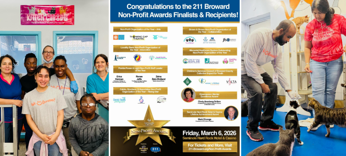Thank you 211 Broward for recognizing the impact of our collaboration as well as the important nonprofit work done by the other finalists in this category: Broward Health / Memorial Health System and Goodman Jewish Family Services. We are looking forward to the Award Ceremony on Friday, March 6th at the Seminole Hard Rock Hotel & Casino.
