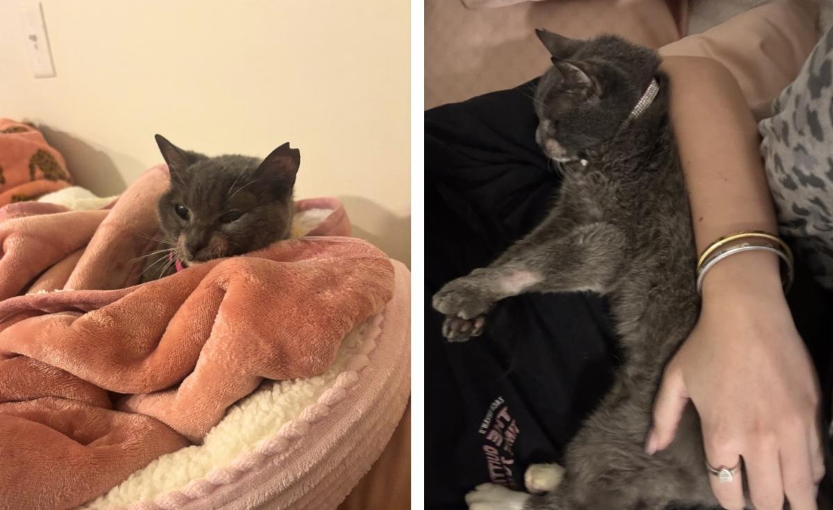 “She looked so cute and I was surprised to learn that she was one of the oldest cats at the shelter,” said Nascimento. Before even visiting Abandoned Pet Rescue, she knew Honey Boo was meant to be hers and applied to adopt the 14-year-old grey and white kitty.