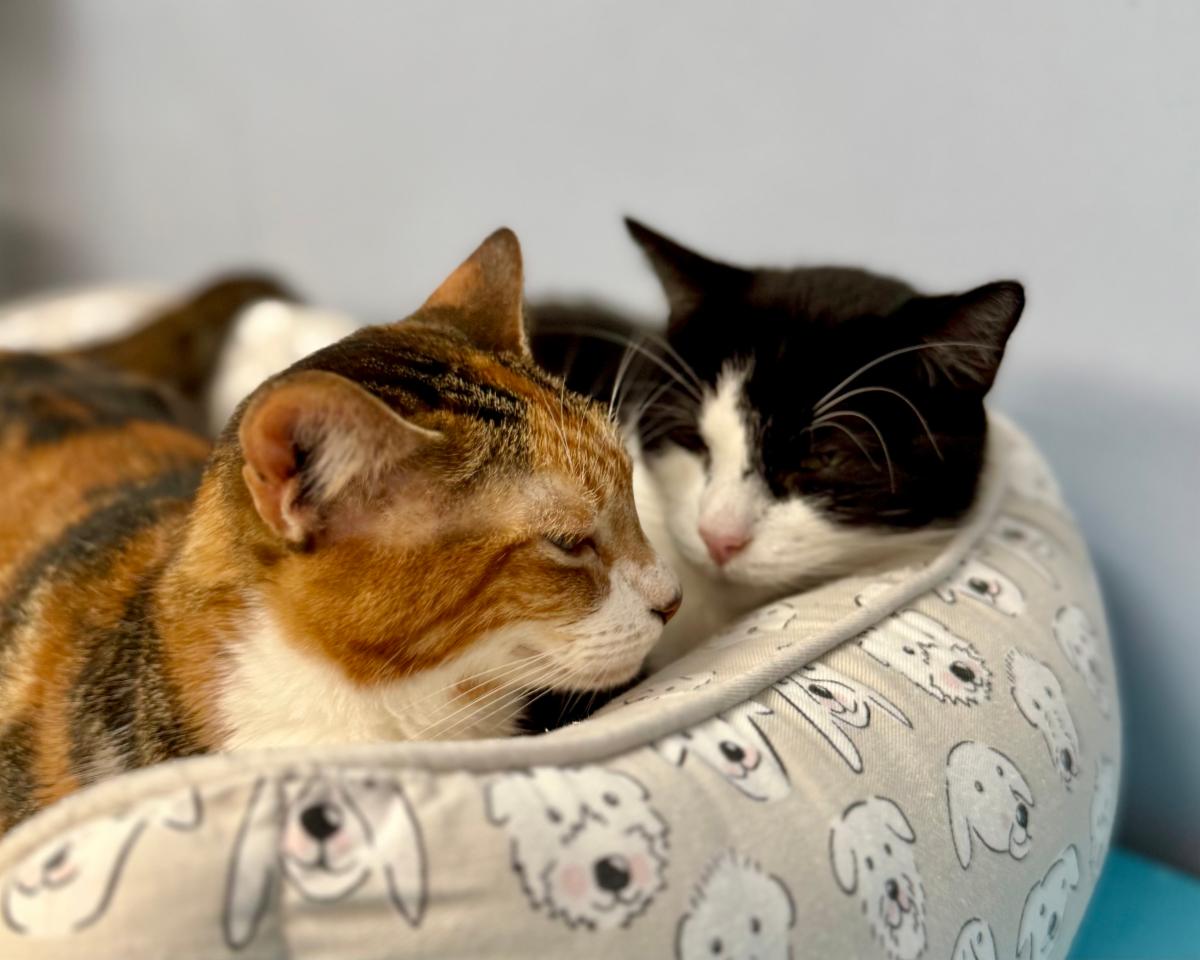 Pepe and Wilma spent over 1,000 days at the shelter, waiting year after year until they were finally adopted together. Sadly, their adopter fell ill, and now this sweet bonded pair has found themselves back where they started. Pepe is a playful, affectionate sidekick who loves wand toys and following you around. Wilma is a bit more introverted than Pepe Le Pew but blossoms with pets and feels most confident by Pepe’s side. They beat the odds once, and they deserve to do it again. Together, they’re double the love, double the purrs, and ready to fill your home with joy.