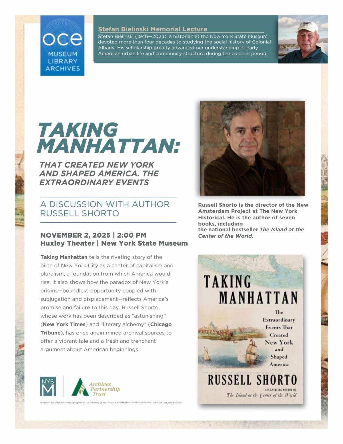 Mark Ferrara, Professor of English at State University of New York at Oneonta and author of The Raging Erie: Life and Labor Along the Erie Canal (Columbia University Press, 2024) will discuss his recent book and some of the stories of the people who lived, and worked, along the banks of the canal, emphasizing the forgotten role of the poor and working class in this epochal transformation.
