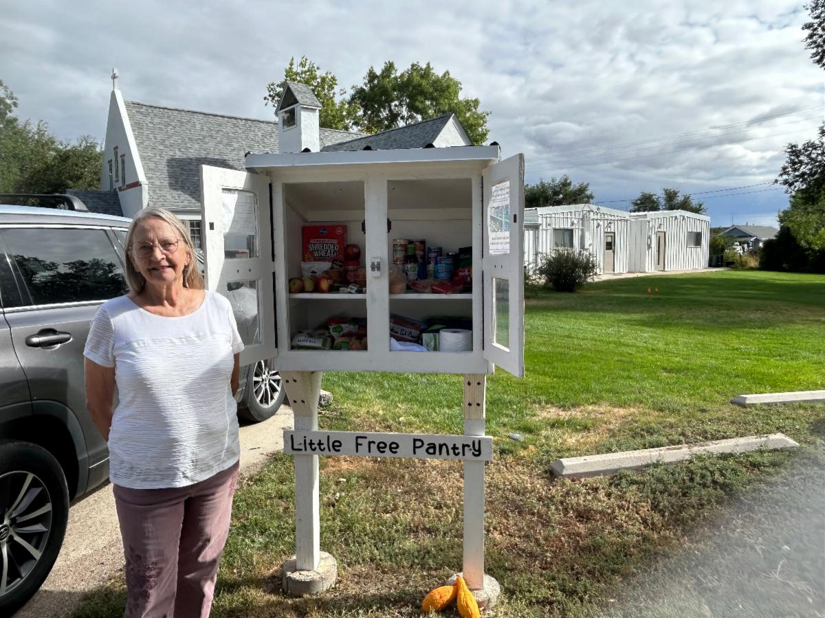 In a small country town of Strasburg, Colorado, it was learned that the food pantry had closed and then that the nearby Town of Bennett’s food pantry also closed. It was time. Time to find a way our small church, Saron Lutheran, in Strasburg, could meet some of the needs of neighbors for food. The call to action found its solution in building and maintaining a Little Free Pantry. Jackie Lanning got approval from the church Council and her family got busy. Don, Jackie’s husband, found design ideas on www.littlefreepantry.org and designed and built one. Their daughter and her two boys, then 5- and 7-years old painted it. Their son spent hours digging the post holes. (If you know the soil around Strasburg, you would understand why ‘hours’ were needed.)