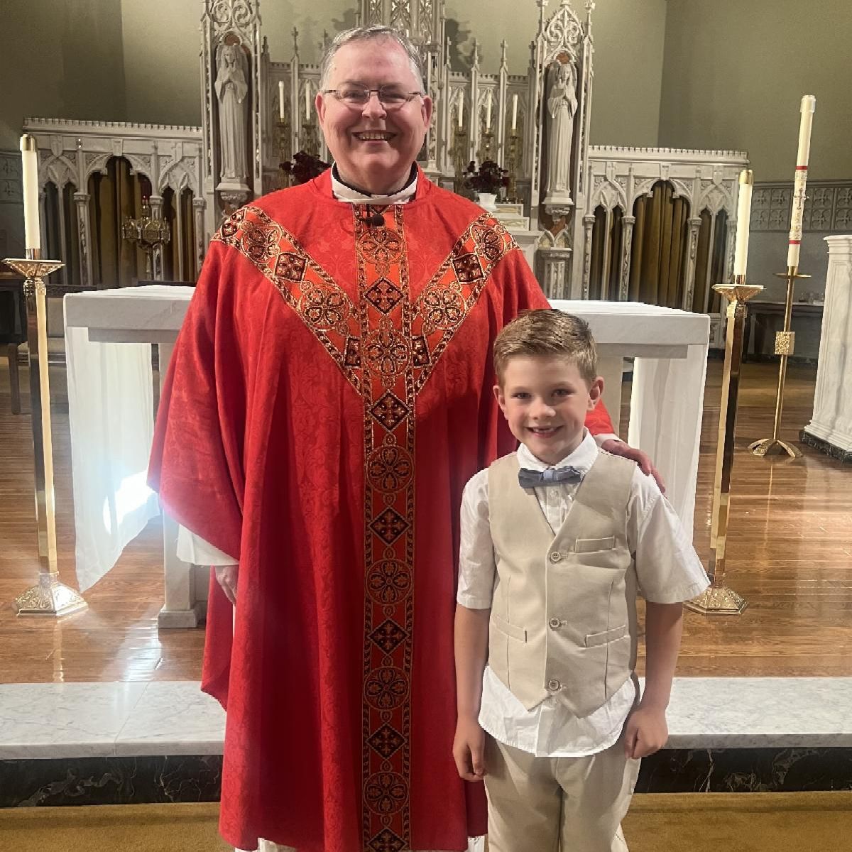 Saint Patrick Church celebrates several vocations to the priesthood in addition to Fr. Rink, including Fr. Nicolas Rapcock, Fr. Matt Fish, and, of course, Fr. David Mulholland, along with four alumni of Saint Patrick Catholic School: Fr. Pete Henriot SJ '50, Fr. John Fuchs SJ '56, Fr. John Endres SJ '60, Fr. Perry Petrich SJ '99, and Fr. Alfred L. Morisette SJ '44.