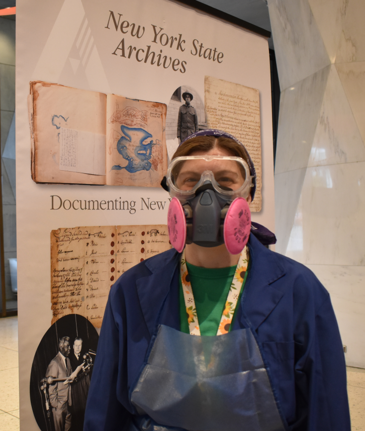 Archivist Emily Allen sports disaster management wear on Halloween! Did you know the State Archives offers guidance in records disaster management? Learn more