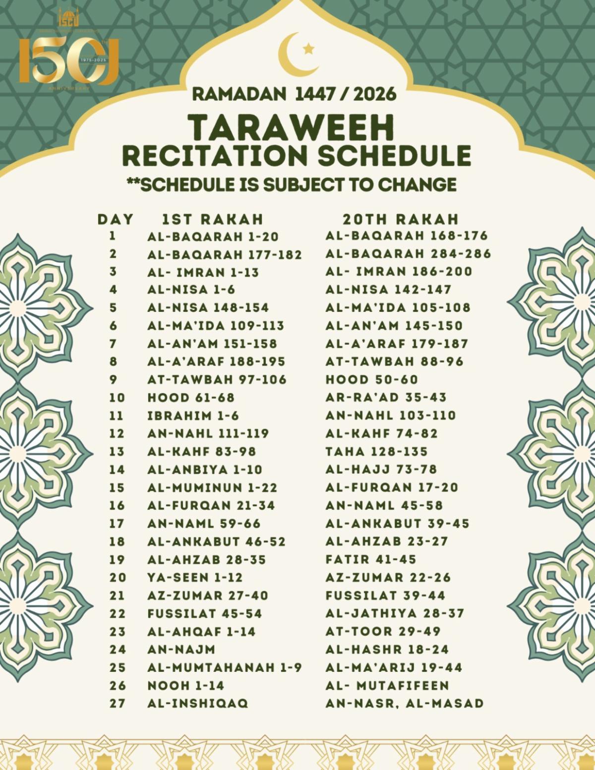 We look forward to seeing everyone during this blessed month!