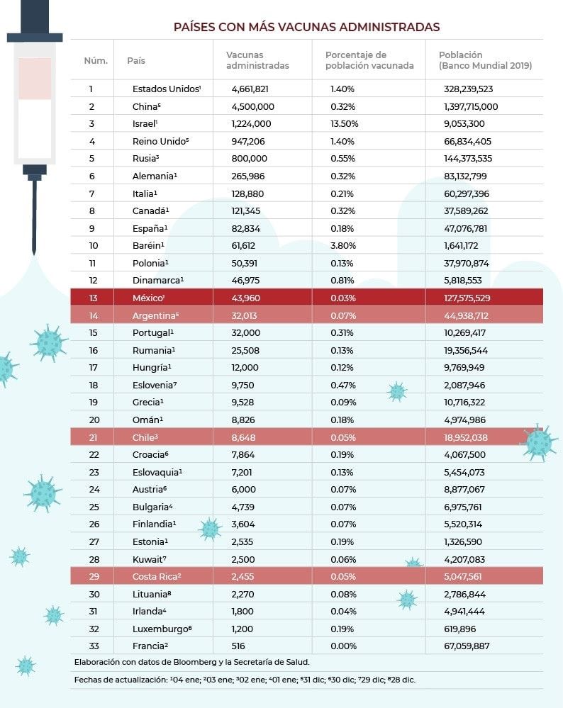 México se encuentra en el lugar número 13 de los países en el mundo con más vacunas aplicadas hasta el momento. Sin duda, los esfuerzos del Gobierno Federal y el compromiso con la salud y bienestar de las y los mexicanos es un mérito incuestionable, a pesar de las críticas de quienes se oponen a la transformación. Sigamos con las medidas de prevención y no bajemos la guardia.
