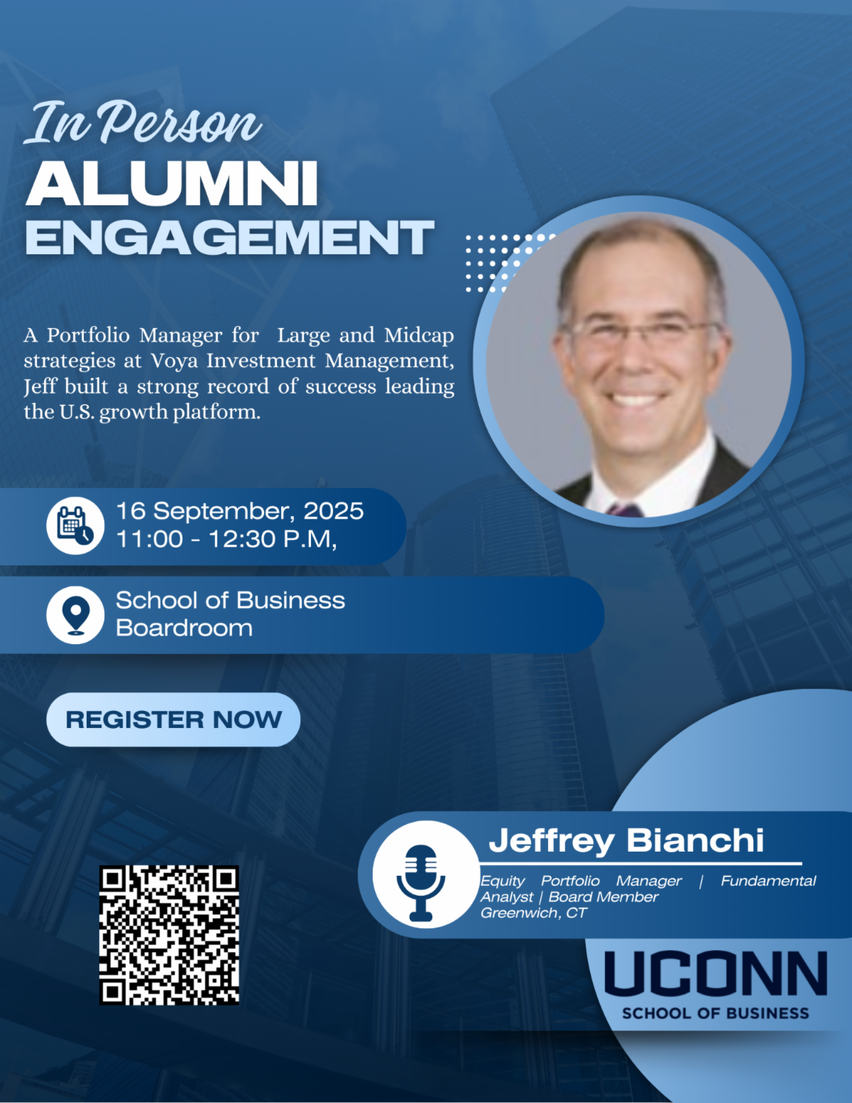Don’t miss the chance to hear from UConn alum Jeff Bianchi as he shares his career journey and insider tips for building your own path to success.