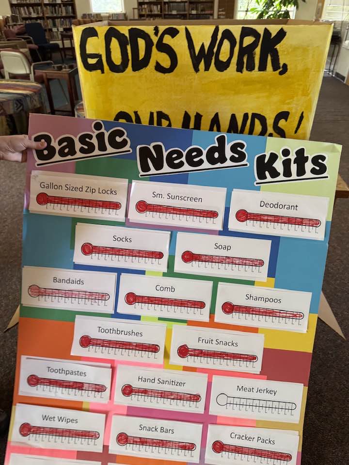 | | On “God’s Work Our Hands Sunday,” Bethlehem assembled care packages to give to homeless people in need. Kurt also encouraged the congregation to write postcards to their district legislators, thanking them for their service and urging them to fund SNAP and close the Medicaid gap in the upcoming October special session. | | Kurt Rager, Synod Minister for Advocacy in New Mexico visited Bethlehem Evangelical Lutheran Church where he preached, led an adult forum, and enjoyed lots of great coffee and conversation! Bethlehem was a key congregation in the formation of Lutheran Advocacy Ministry in New Mexico 42 years ago, as the founding director, Nima Ward, was a member of this congregation. | |