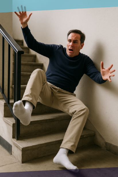 Rockney lived in an old Beverly Hills apartment complex. Rockney testified the date of the accident was on or about – Aug 25, 26, or Sept 25, 26, 2020, in his apartment building. While descending the ancient interior stairway he was wearing socks, but not shoes. He slipped and fell. There were no witnesses.