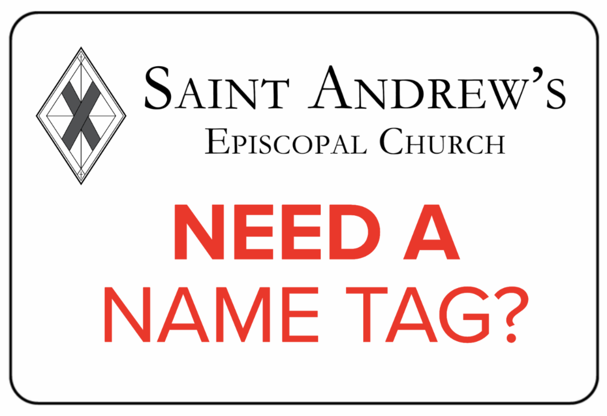 If you requested a name tag in the last 2 weeks, it should be ready for you on Sunday. If do not have a name tag, have misplaced yours, or need something changed, please let us know so we can provide one for you. Kindly email our Frances, Director of Communications.