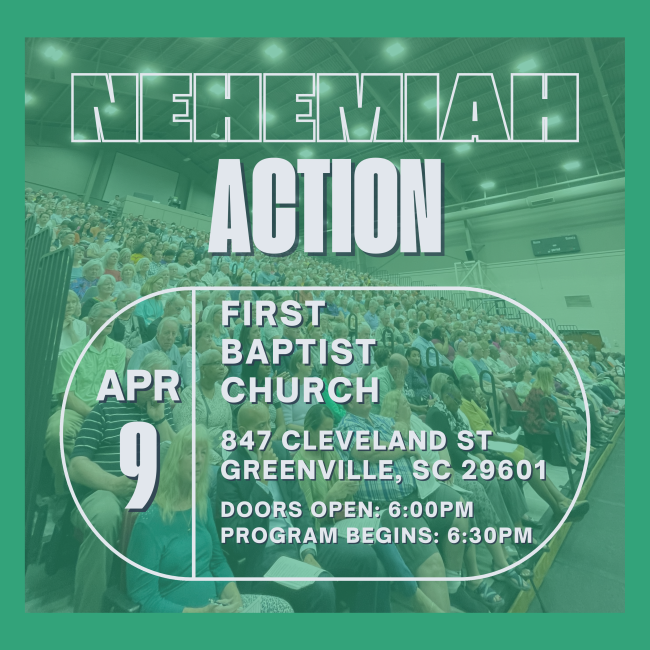 GOAL Justice Nehemiah Action Rally | Thursday, April 9 | 6:30 PM | First Baptist Church of Greenville (847 Cleveland St)