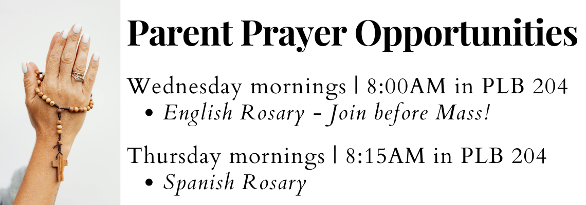 THURSDAYS - Parent Rosary Group (Spanish), 8:15 AM, PLB Rm. 204.